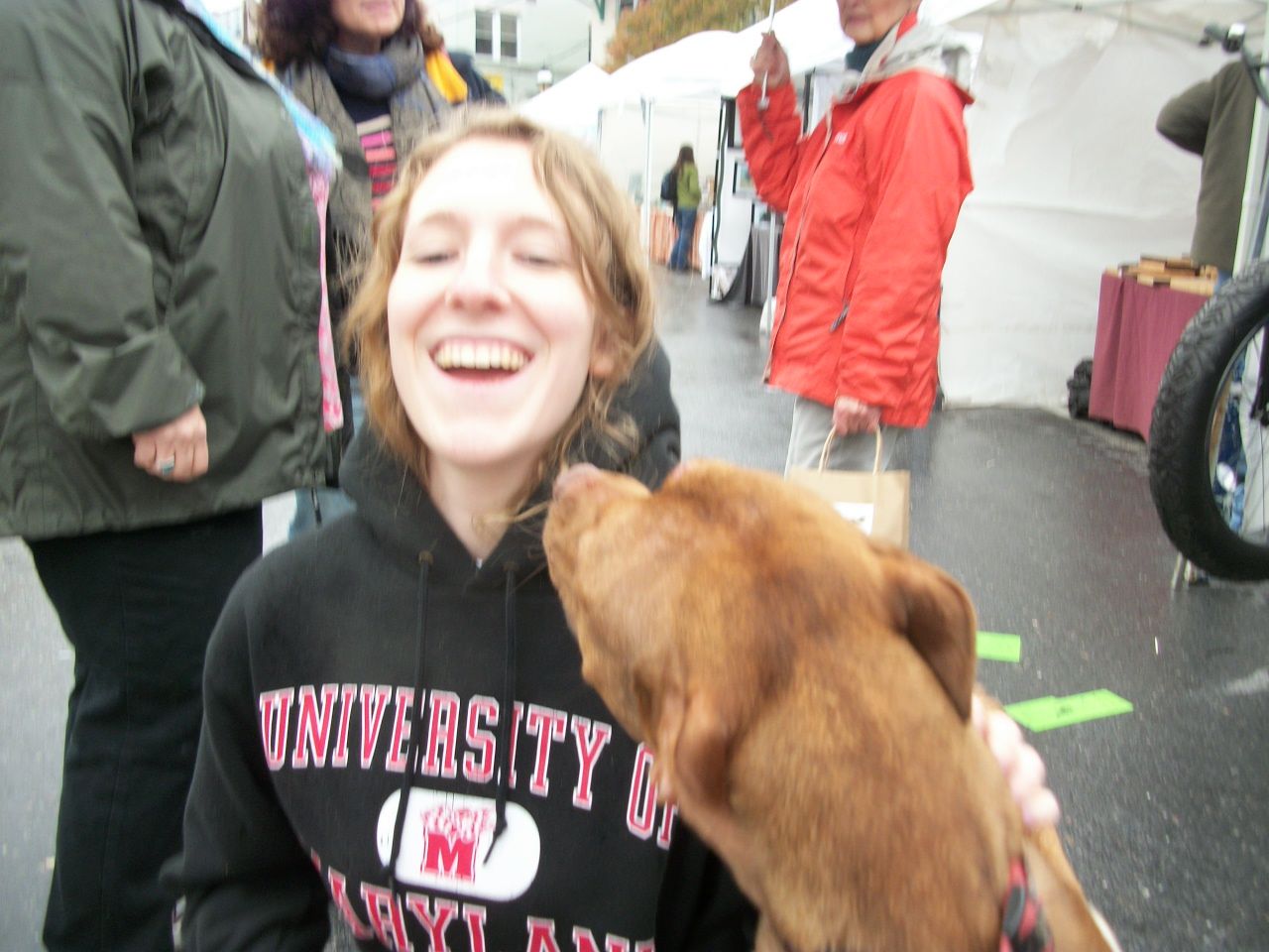 Everyone wanted to pet the little pittie puppy with the homemade orange Adopt Me Vest. Fortunately, the feeling was very mutual.